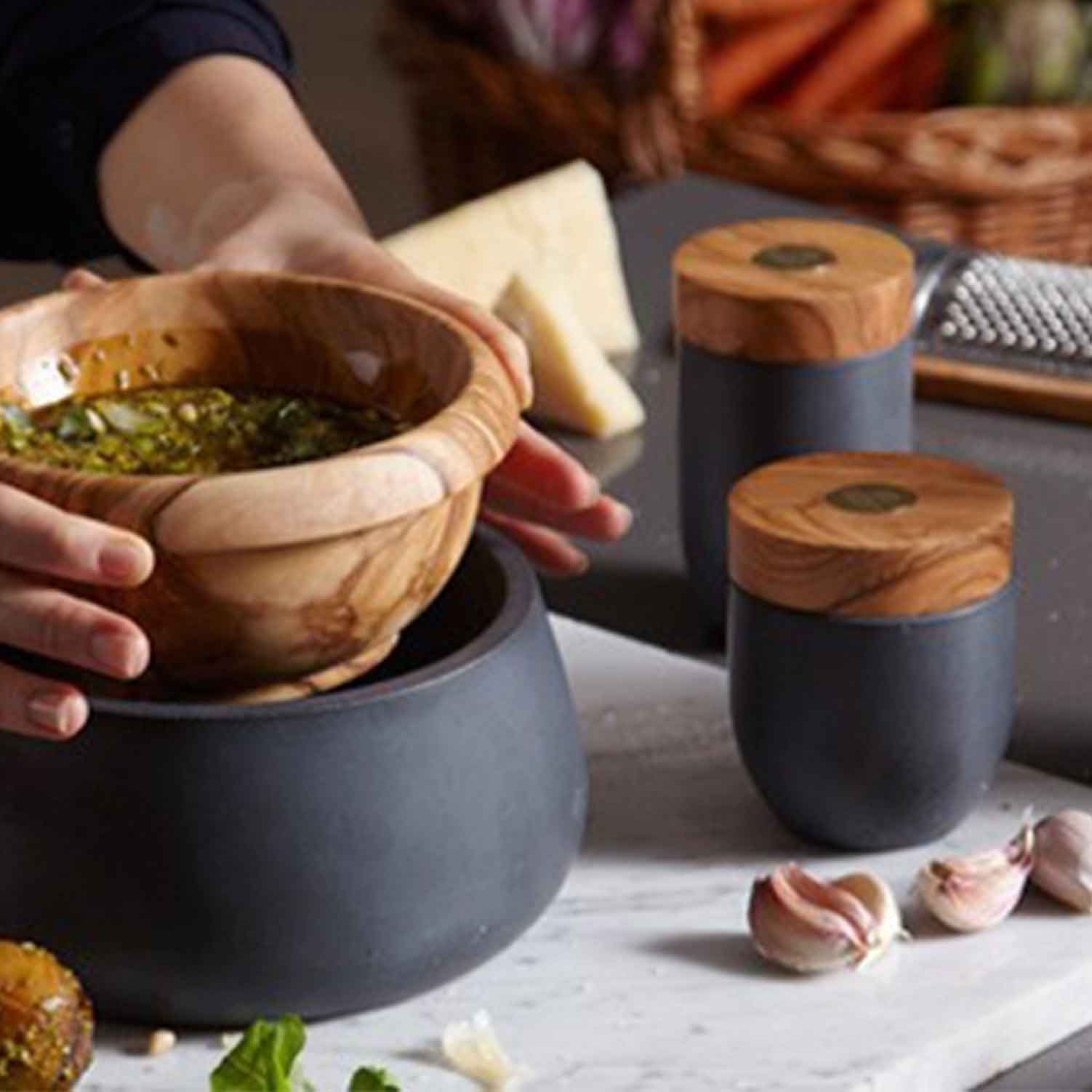 Le béton, travaillé dans de multiples nuances et finitions, constitue la base de nos créations.